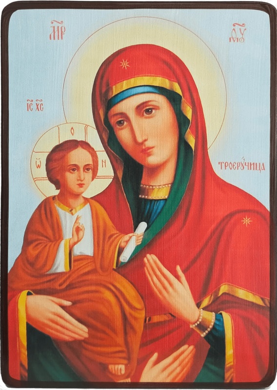 Пресвятая Дева - это олицетворение доброты, милости и безграничной любви, а этот образ по праву считается наделенным невероятной силой. Купить икону Троеручица Божией Матери, яркая - значит открыть окно в удивительный мир истинной веры. Искренняя и чистая молитва перед ликом Пречистой Девы поистине творит невозможное.
