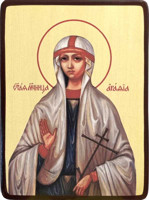 Святая жила в Сицилии при императоре Декии и происходила от знатных родителей. Правитель области Квинтиан был увлеченный красотою юной христианки. Он решил отвлечь ее от христианской веры и с этой целью поместил ее в дом одной язычницы-вдовы, живущей беспутной жизнью. Однако жизнь среди веселья и роскоши не расположила к себе святую.