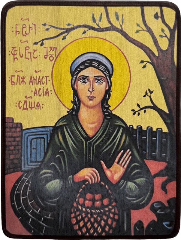 Мачеха, завидуя счастью падчерицы, была против. Офицер не выдержал горестной новости и на месте застрелился. Анастасия, увидев, что произошло, села на низенькую скамеечку посреди двора и больше никогда не вставала на ноги. Она сидела в любую погоду под открытым небом, сидела, молясь о том, чтобы Господь простил ее жениху этот страшный грех, простил и помиловал. На месте своего подвига она просидела с 1907 по 1960 гг.