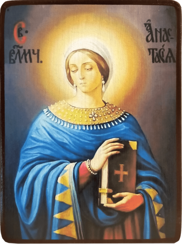 Святая Анастасия Узорешительница жила в период раннего христианства в III веке нашей эры. Была дочерью богатого и знатного римлянина. Она прославилась как целительница, духовная помощница заключенных в темницы христиан и верная последовательница Спасителя. За милосердие и самоотверженное служение заключенные назвали ее Узорешительницей, т.е. "облегчающей оковы". Когда в ней признали христианку, то подвергли мучениям. Святой великомученице молятся об облегчении уз находящихся в заточении, об обращении ко Христу заблудших и впадших в тяжкие преступления.