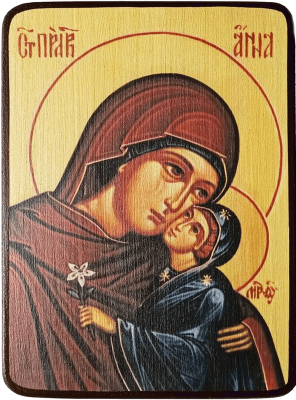 Святая Анна (мать Пресвятой Богородицы), была младшей дочерью священника Матфана из Вифлеема, который происходил из колена Левиина. Она вышла замуж за святого Иоакима. Долго святая Анна была бесплодна, но по прошествии 20 лет, по горячим молитвам святых супругов, Ангел Господень возвестил им о Зачатии Дочери, Которую благословит весь род человеческий. Зачатие совершилось в Иерусалиме, где и родилась Пресвятая Дева, нареченная Марией.