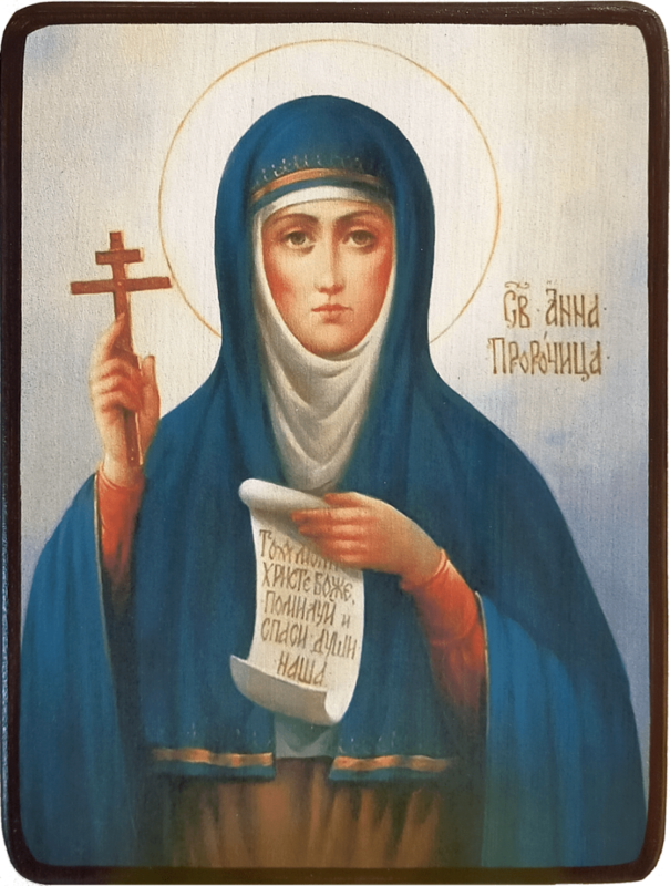 Анна была дочерью Фануила, из колена Асирова, 84-летняя вдова. Она удостоилась быть в храме вместе со святым Симеоном Богоприимцем при сретении Спасителя нашего, Господа Иисуса Христа, Которого принесли туда на 40-й день после рождения для совершения над ним законного обряда (Лк.2:36-38).