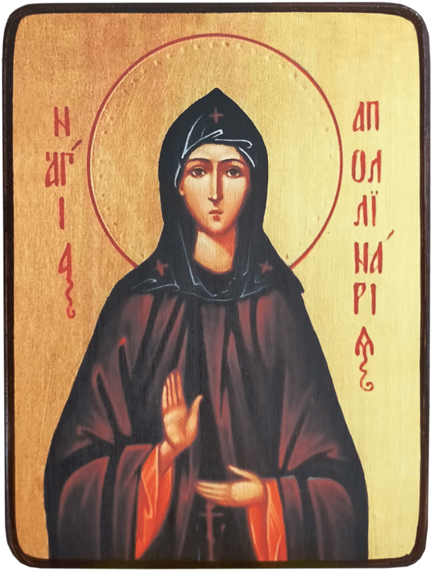 Преподобная Аполлинария была дочерью Анфемия (бывший правитель Греческой империи). Отказавшись от брака, она выпросила у своих родителей разрешение поклониться святым местам Востока. Прибыв из Иерусалима в Александрию, Аполлинария тайно от слуг переоделась в одежду инока и скрылась в одно болотистое место, где несколько лет подвизалась в строгом посте и молитвах. Затем она, назвав себя иноком Дорофеем, поступила в скит к святому Макарию Египетскому.