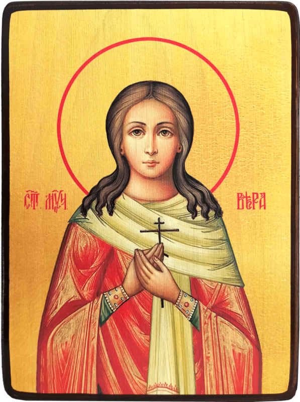 Святая мученица Вера жила в Риме во 2 веке нашей эры. Во время гонения на христиан (около 137-го года) была казнена вместе с двумя другими своими малолетними сестрами, Надеждой и Любовью. Несмотря на молодые годы, сестры, "...неустрашимо исповедали веру свою во Христа, не отреклись от этой веры ради обещанных им всевозможных радостей земных, не отступили перед страшными муками...". ("Жития святых, чтимых православной церковью, со сведениями о праздниках господских и богородичных, и о явленных чудотворных иконах". Архиепископ Филарет Гумилевский. Издание Сретенского монастыря, 2000 г.) Мать их, Святая София, воспитавшая своих дочерей в любви к Богу, уча не привязываться к земным благам, была свидетелем мук их и приняла "страдания за Христа не телом, а сердцем". Три дня она не отходила от могилы дочерей, пока не предала свою душу Господу.