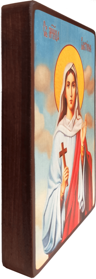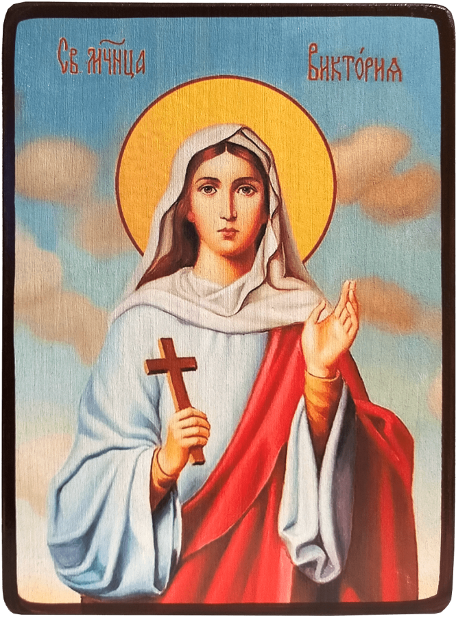Святая Виктория Коринфская жила в III веке. О христианском учении узнала от святого Кодрата. Она вместе с другими его учениками посещала его в пустыне. В те времена были страшные гонения на христиан. Однажды, когда Кодрат беседовал с учениками, из-за скалы появились воины. Они схватили христиан и заточили их в тюрьму. На допросе Святая Виктория Коринфская отказалась отречься от веры. Ее приказали казнить вместе с другими учениками Кодрата. Мучеников бросили в море, но случилось чудо, Святая Виктория встала и пошла по воде, как посуху, вместе с остальными христианами. Но это не остановило преследователей, они догнали их на лодках и предали смерти.