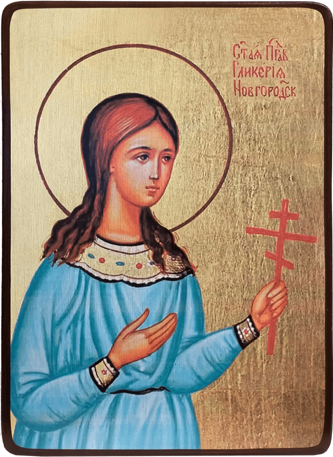 Святая Гликерия - дева, она из тех мудрых дев Евангельской притчи, которые собрали елей для светильников своих, чтобы достойно встретить своего Жениха Христа. Этот елей святых дел и подвигов помогли собрать предшествующие святой Гликерии жены Руси. Поэтому духовному взору образ святой праведной Гликерии раскрывается как светильник, горящий пред Богом.