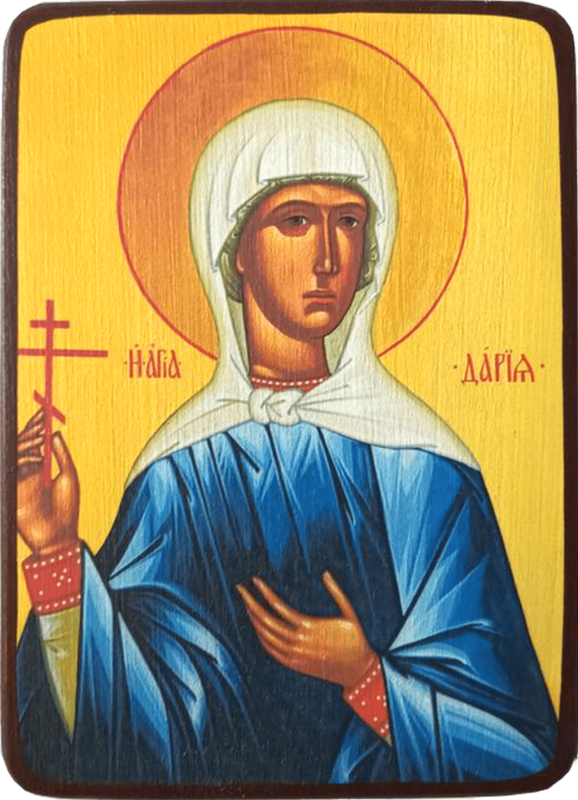 Святая мученица Дария Римская почитается Православной Церковью вместе со своим мужем - святым мучеником Хрисанфом. В юности Дария Римская исповедовала язычество. Выйдя замуж за христианина Хрисанфа, она была обращена им во Христианство. По обоюдному согласию супруги стали вести девственную жизнь, а после смерти отца Хрисанфа поселились в отдельных домах. В 283 году, во времена гонений на христиан императора Нумериана, Хрисанф и Дария за открытое исповедание веры во Христа были подвергнуты жестоким истязаниям, а затем заживо закопаны в землю.